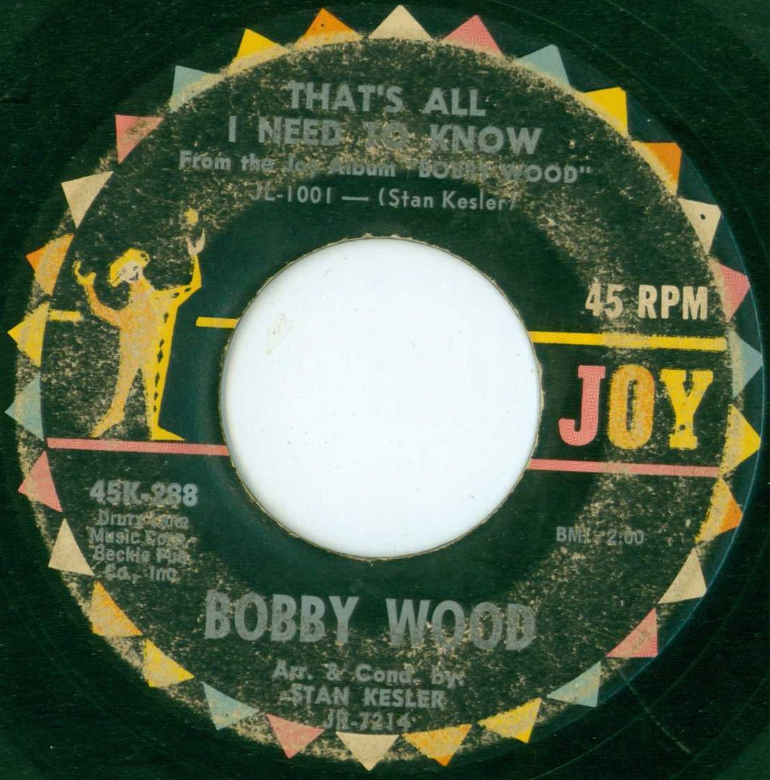 Stan Kesler begünstigte ihn 1964 auch bei Joy Records. Hier hatte Bobby Wood einen kleinen Hit mit dem Titel “If I'm A Fool for Lovin' You“. Für Joy Records veröffentlichte Bobby Wood zwischen 1963-1965 acht Singles.