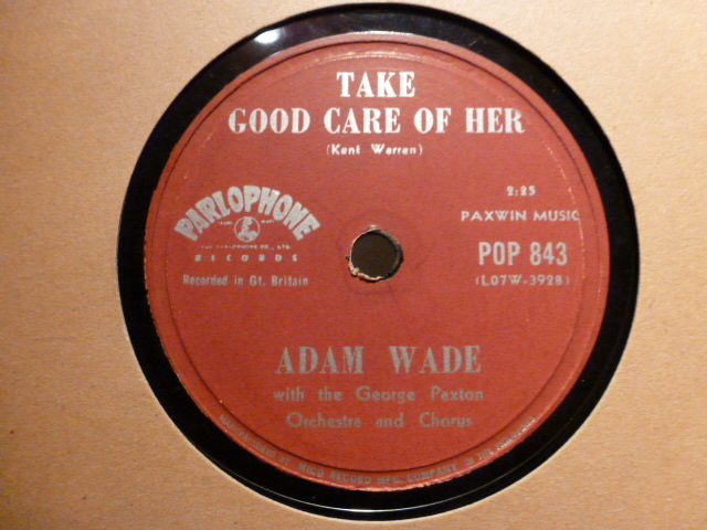 Wade worked for a time as a lab assistant with Dr. Jonas Salk on the polio research team. He wanted to pursue a recording career and signed with Coed Records in late 1959. He had his first major hit with a song called "Ruby" in early 1960, a cover of the hit movie song of 1953. Wade was popular in the early 1960s with vocal styling similar to that of Johnny Mathis. In 1961 three of Wade's songs ("Take Good Care of Her" (#7), "As If I Didn't Know" (#10) and "The Writing on the Wall" (#5) made the Top Ten in the Billboard Hot 100 chart. These songs also made the Top Five of Billboard's easy listening (later adult contemporary) survey. In addition, "Take Good Care of Her" reached #38 in the UK Singles Chart in June 1961.