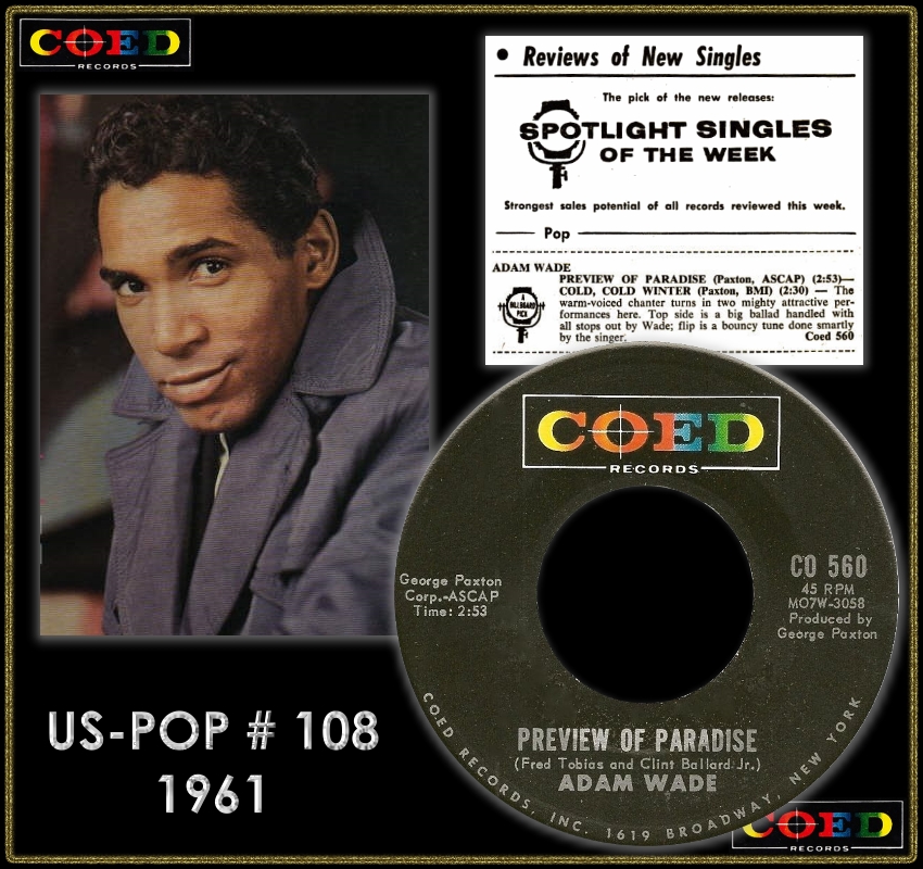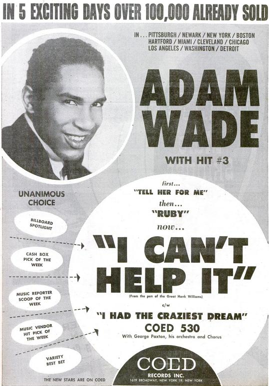 von Adam Wade habe ich auf der englischen wikipedia Seite etwas gefunden und jede Menge Werbeanzeigen in Billboard.