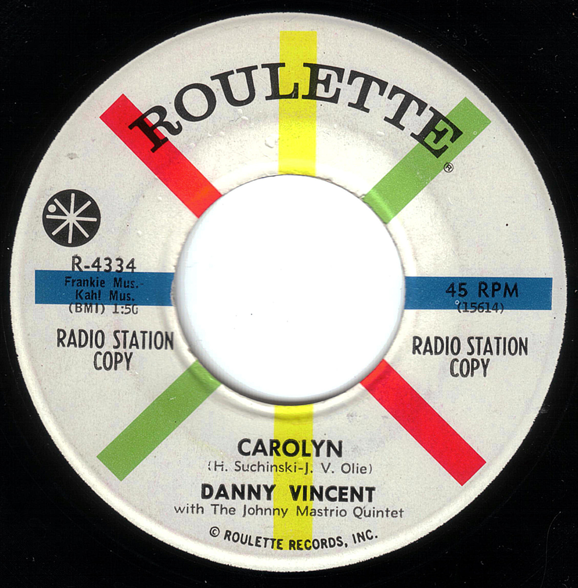 Roulette 4334 - Danny Vincent with The Johnny Mastrio Quintet "The Days are long"/"Carolyn" (Matrixnr.: 2D-15613 und 2D-15614)