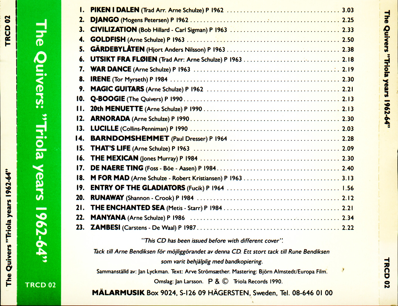 PS. Paßt zwar nicht unbedingt hierher aber weil das TRIOLA-Label erwähnt wird ein Tipp: die Bestellnummern von TRIOLA kann man zeitmäßig nur mit dem Präfix bestimmen, denn die norwegische (Präfix: TN) und die dänische (Präfix: TD) Nummerierung ist völlig unterschiedlich. Die Nummer 276 gab es beispielsweise in Dänemark erst 1965.