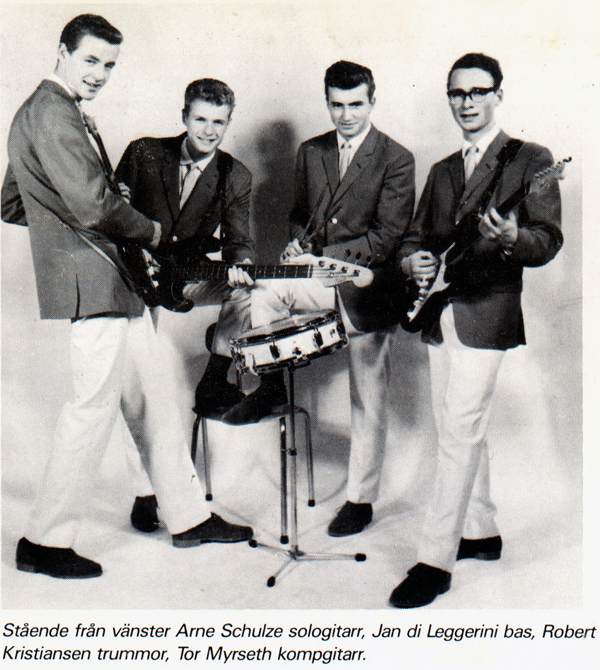 Die Rückseite hat einige bizarre Eigenheiten, zwar nicht musikalisch - beide Titel sind übrigens super Gitarre-Instrumentals - , sondern auf eine ganz andere Art. Einmal hat sie einen finnischen Namen "Tyttö laaksossa" und das bei einer norwegischen Gruppe. Aber vielleicht dachte man schon an den finnischen Markt !?. In den Niederlanden scheint allerdings der norwegische Titel "Piken i dalen" auf. Mit meinen universellen Sprachkenntnissen (ich kann ja und nein in vielen Sprachen) habe ich herausbekommen, dass sowohl der finnische als auch der norwegische Titel übersetzt etwa "Das Mädchen vom Tale" heißt. Das dürfte 1959 in Norwegen in der gesungenen Fassung ein populärer Schlager gewesen sein (norwegische ODEON 45-ND 7338....GUNNAR ENGEDAHL og ERLING STORDAHL) Wie auch immer,