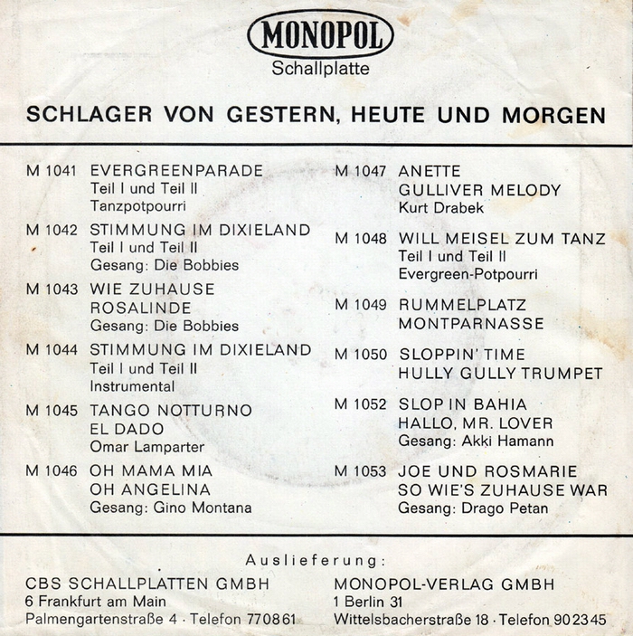 Monopol-Schallplatten im CBS-Vertrieb: ich kenne deren vier, verbunden mit der Frage, ob ihr noch weitere Platten (und evtl. auch etwas zur Labelgeschichte) beisteuern könnt?
