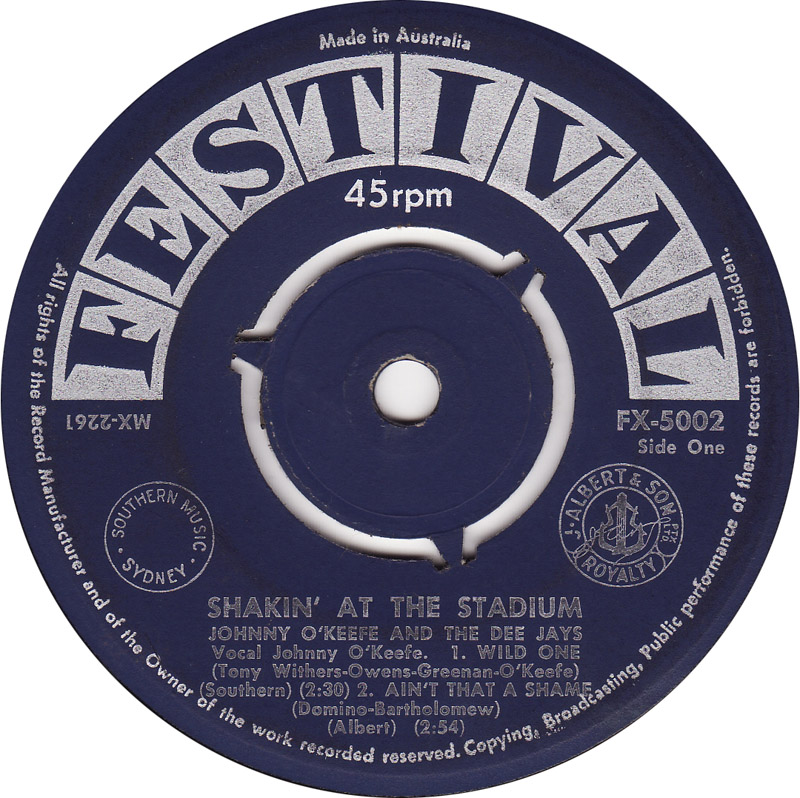 05 58....9-55067....JOHNNY O'KEEFE With THE DEE JAYS..Shake Baby Shake *)/Real Wild Child (AUS: FESTIVAL unveröffentlicht *)/EP 5002 als "Wild One")
