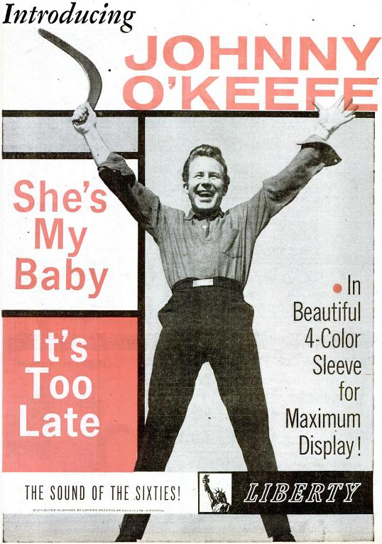 Im Beitrag "Australien und Ozeanien" wird Johnny O'Keefe als einer der wichtigsten australischen Rocknroll-Stars erwähnt. Da er auch in den USA 1959 bis 1960 present war und das genannte Thema in erster Linie für australische Produktionen gedacht ist, möchte ich ihm hier ein eigenes Thema widmen. Außerdem ist er für uns Sammler nicht unwichtig und daher ist dieser Beitrag nur recht und billig.
