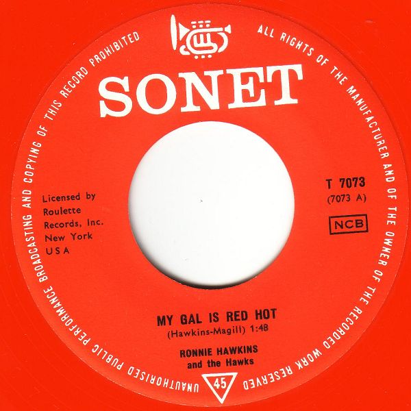09 59....T 7073....RONNIE HAWKINS and the Hawks..My Gal Is Red Hot/Mary Lou (ROULETTE LP 25078/4177)