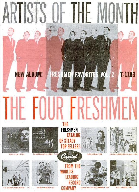 1950 hatte The Four Freshmen ihren großen Durchbruch, als der Bandleader Stan Kenton das Quartett in Dayton, Ohio hörte. Er rief sein Plattenlabel Capitol Records an und arrangierte, dass sie dort vorspielen konnten. Daraufhin wurde die Gruppe noch im selben Jahr durch Pete Rugolo unter Vertrag genommen.