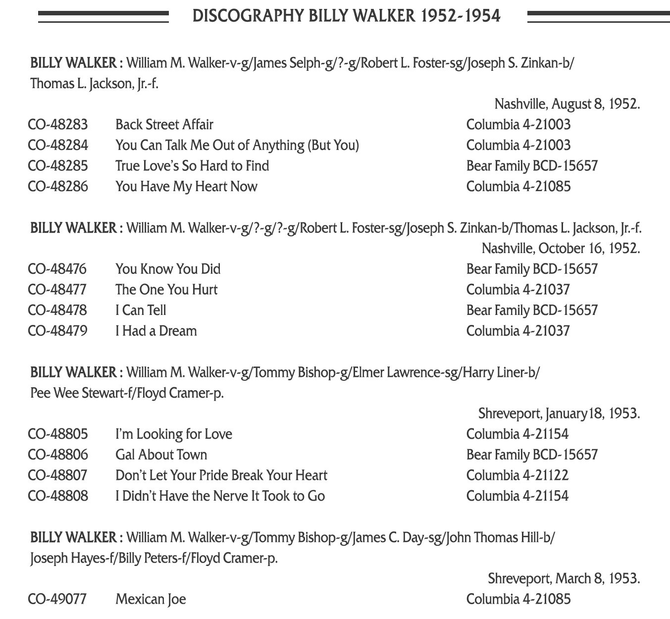 über Billy Walker habe ich sogar etwas gefunden...