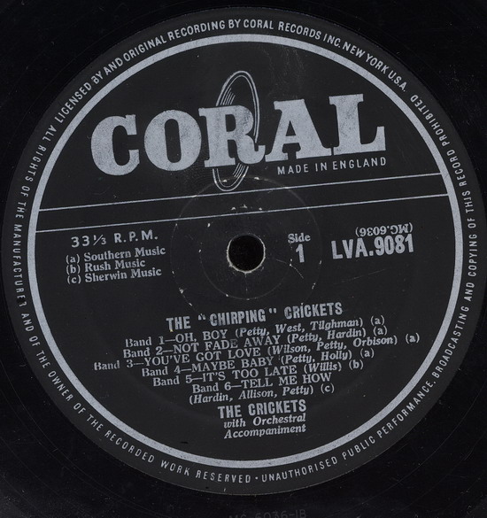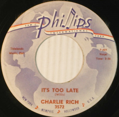 Geschrieben wurde "It's Too Late" von Chuck Willis, der auch der Original-Interpret ist (ATLANTIC 45-1098). Diese Single wurde im Mai 1956 veröffentlicht. Die Buddy Holly-Fassung erschien im November 1957 auf der LP "The Chirping Crickets" (BRUNSWICK 54038).