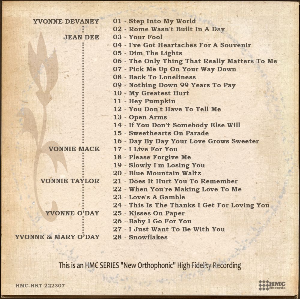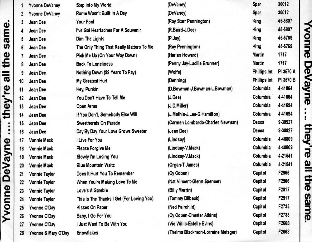 22 May 1959 Bradley Film & Recording Studio, 804 16th Ave. South, Nashville 3, TN - Yvonne Devaney aka Jean Dee