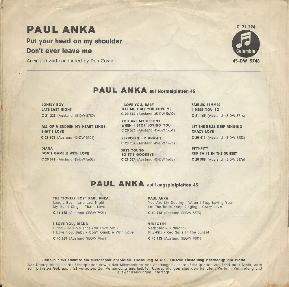 originalversion - paul anka: put your head on my shoulder