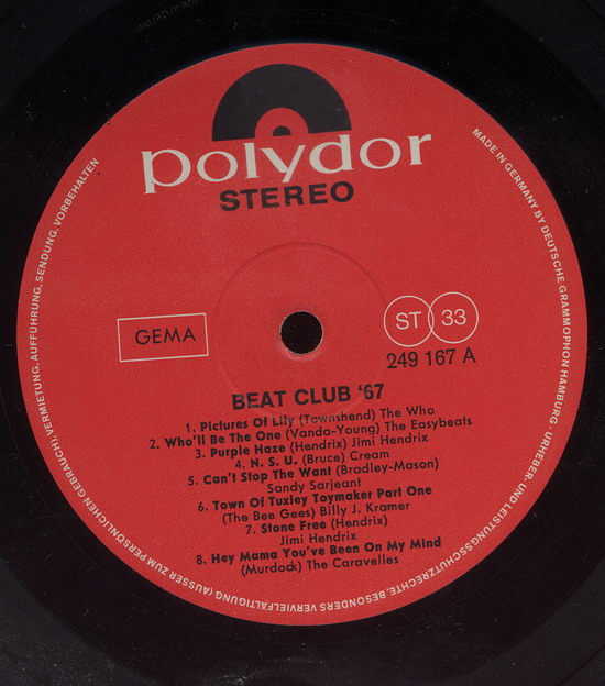 Die "Beat-Club '68" hat die Bestellnummer 249187 und den Schneidcode "L7", also November 1967, die Platte erschien wohl pünktlich zum Weihnachtsgeschäft 1967.