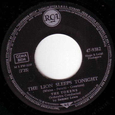 Original : The Tokens - The Lion Sleeps Tonight - 47-9382 ( 1961 )