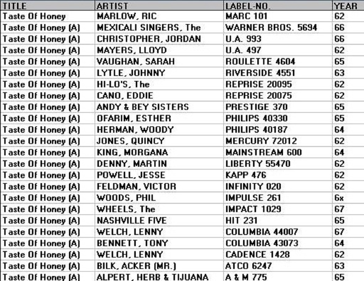 TITEL_ : A taste of honey - recorded 10.7.63