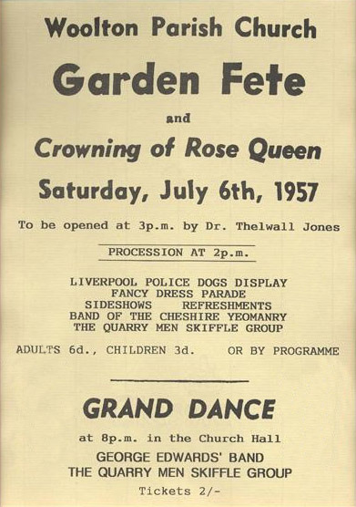 Am 6.Juli 1957 wurde Musikgeschichte geschrieben: Eine Schülerband der Quarry Bank High School spielte auf dem Gartenfest einer Kirchengemeinde in Liverpool einige Skiffle-Songs. In einer Pause wurde dem 16jährigen Gitarristen der Band ein 15jähriger Junge vorgestellt. Dieser verblüffte, weil er Rock`n´Roll-Songs auf der Gitarre spielen konnte, obwohl er Linkshänder war. Diese Begegnung ist als "der Tag, an dem John Lennon und Paul McCartney sich kennenlernten" bei den Fans der Beatles wohlbekannt.