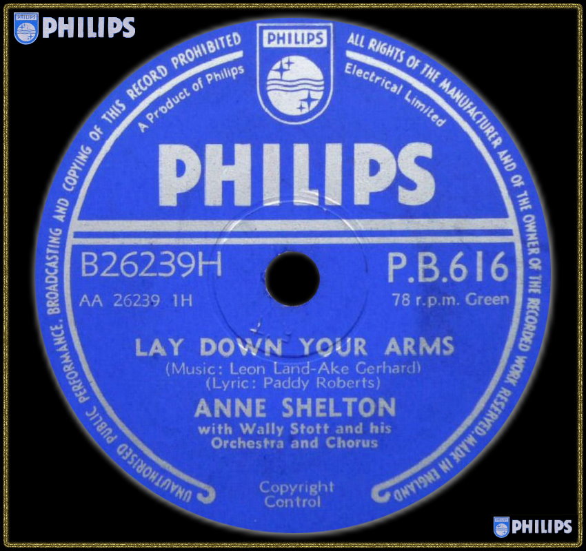 In Großbritannien hatte sie dann aber 1956 auch in den inzwischen eingerichteten Singles-Charts einen „offiziellen“ Nummer-eins-Hit mit dem Song „Lay Down Your Arms“ („Leg' Deine Waffen nieder“), der von Johnny Franz produziert war und bei dem Joe Meek einen seiner ersten Jobs als Toningenieur hatte. Der Song kam ursprünglich aus Schweden, wo er unter dem Titel „Ann-Caroline“ bekannt war. In den USA nahmen die Chordettes eine Coverversion auf, die bis auf Platz 16 der US-Charts stieg.