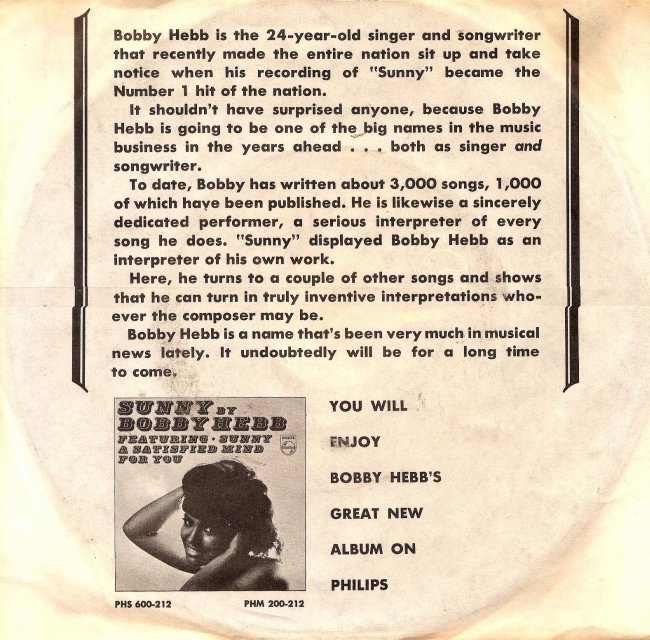 Bobby Hebb kenne ich nur als Komponisten von Sunny.