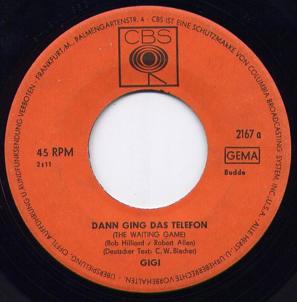 GIGI, Sängerin, Duettgesang auch mit BERND SPIER, 1964 CBS 2167 ("Dann Ging Das Telefon (The Waiting Game)"/"Verliebte Geigen"), 1967 GIGI & The NIGHT SHADOWS auf Metronome 933 ("Hey, Hey, Sonny"/"Hast Du Vergessen")