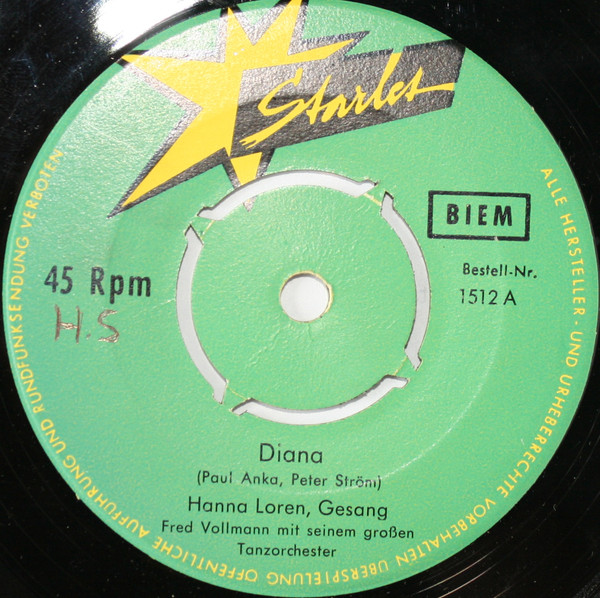 Starlet (1500 "Es Ist Nie Zu Spät Für Die ...."/"Küß Mich Einmal, Küß Mich Zweimal", "Spiel Noch Einmal Für Mich Habanero" & Das FRED VOLLMANN Orchester, "Der Weiße Mond Von Maratonga" als HANNA LAUREN, "Nur Du, Du, Du Allein (To Know Him Is To Love Him)" & Die BENNY SKY COMBO, 1623 "Mir Ist Es Ganz Egal"),