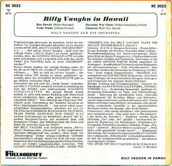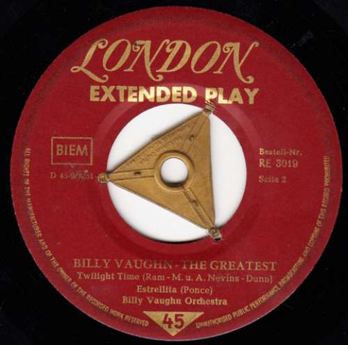 1. Sail alon silvery moon RE--3017, 2. Billy Vaughn The Greatest RE--3019, 3. Billy Vaughn in Caracas RE--3027. Nicht zu vergleichen mit den Rock-n-Roll London EPs, aber so oft findet man die Vaughn EPs halt auch nicht mehr. Wer hat noch mehr EPs.