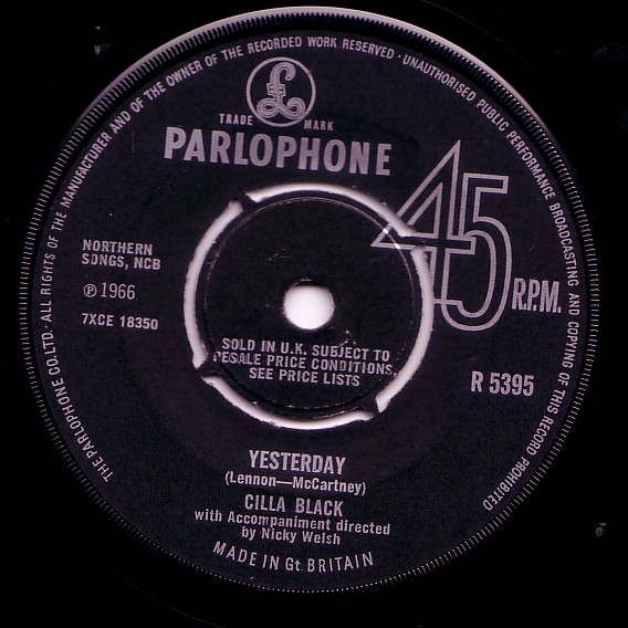 Yesterday war also ein Lückenfüller und so wurde er von der EMI auch so behandelt. Nur in wenigen Ländern erschien der Song als Singleauskopplung, darunter in Deutschland, allerdings nur als B-Seite. Die Engländer versprachen sich überhaupt kein Hitpotential von Yesterday und produzierten nur eine Handvoll Singles - ausschliesslich als Exportpressungen für Schweden bestimmt.