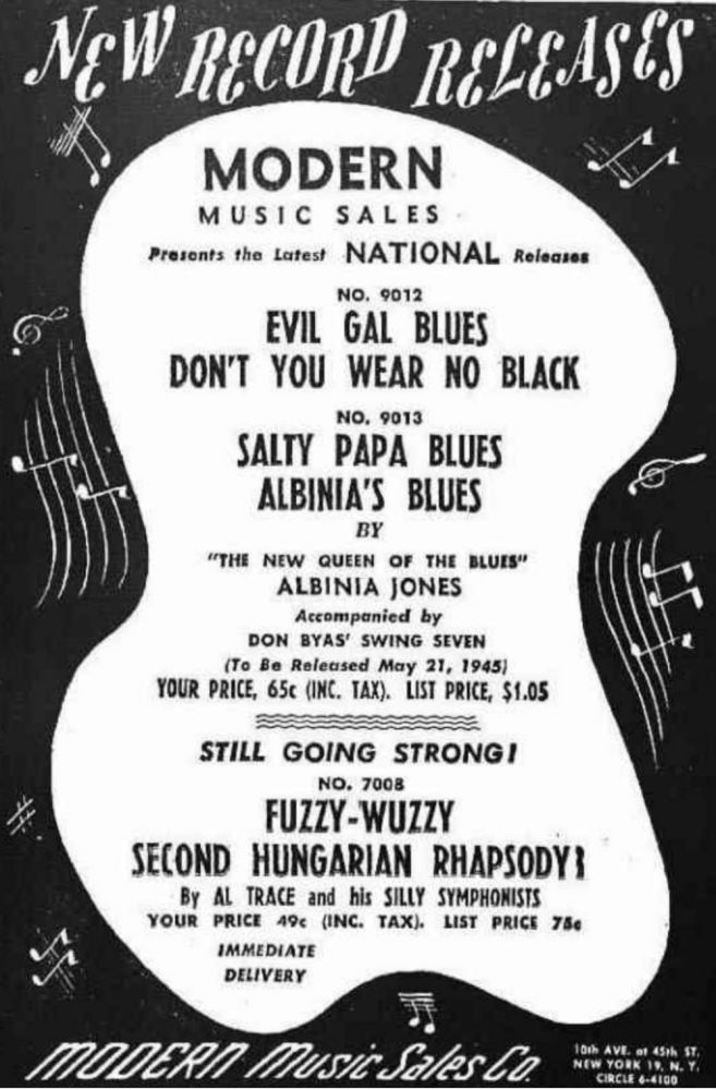Albinia Jones wurde am 29. November 1914 in Gulfport/Mississippi geboren. 1932 ging sie nach New York, um sich nach Engagements in den dortigen Clubs zu bemühen. Bis dato war sie nur in der heimatlichen Holy Baptist Church tätig. Trotz ihrer geringen Erfahrung schien sie so gut zu sein, dass es für eine neunmonatige Verpflichtung im Elk’s Rendevous Club reichte. Anschließend folgten weitere Engagements in anderen angesagten Clubs. Ihre erste Schallplattenaufnahme machte sie 1944/45 für das National-Label (u.a. „What’s The Matter With Me“ auf National 9012). Zu ihrer Begleitband zählten u.a. Dizzy Gillespie, Don Byas und Sammy Price.