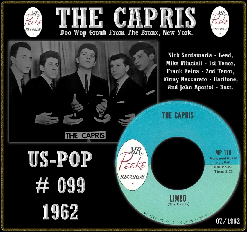 By 1962, The Capris had signed to Mr. McPeeke Records and tried to capitalize on the limbo craze with their first up-tempo A side, "Limbo." It lasted one week at number 99 and was the last Capris chart record. It was also their last new record for 20 years.