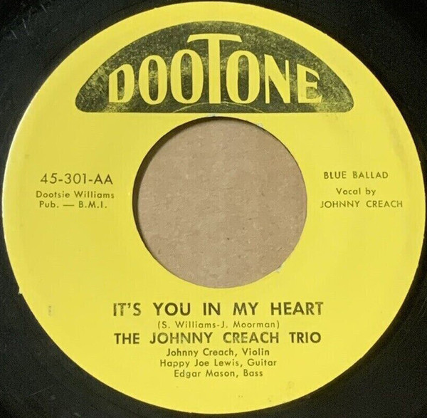 The Bits of Rhythm - The Bits of Rhythm in the late forties were then known as the Three Bits of Rhythm, a trio fronted by Teddy Rudolph. In late January of 1950, the group added swinging violinist Johnny Creach. (He would reappear two decades later as "Poppa" John Creach, and become an integral part of the Jefferson Starship-Hot Tuna conglomeration during the progressive rock era.) The group, now a quartet were part of the big Easter Promenade in Los Angeles sponsored by the LA Sentinel as a celebration of the Black community in the southern California area. The members of the quartet are Teddy Rudolph on vibraphone and bass, Thomas Askew on piano and vocals, Bruce Williams on guitar, and Johnny Creach on violin. After a stint in the Denver area the combo opened up at Peacock Alley in Los Angeles. Many patrons request their version of "I'll Be True". They appear with Smokie Lynn at Ace Cain's in June and are signed to appear in a nightclub scene as entertainers in the motion picture "Cry Danger" which stars Dick Powell and Rhonda Fleming, and is being filmed by RKO studios. After appearing at the Waikiki Inn in Los Angeles the group heads down the coast to San Diego and a gig at The Tops. Later in the year back in L.A., the combo becomes a trio again as Johnny Creach decides to leave and organize his own small combo. He becomes one of the first musical performers to be signed by a new area label called Dootone started by Dootsie Williams, and his first release (by the Johnny Creach Trio) is "Danny Boy". At the end of the year the Bits of Rhythm disbanded and became part of the history of the foundation of R & B.