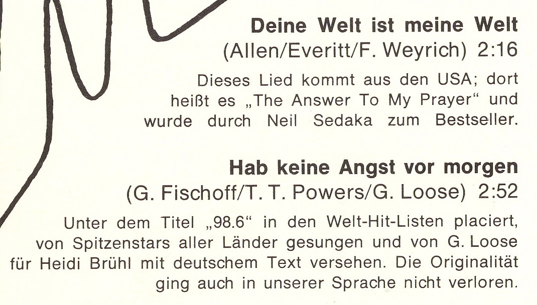 Dabei ist das eine Coverversion von Answer to my prayer von Neil Sedaka (1966).