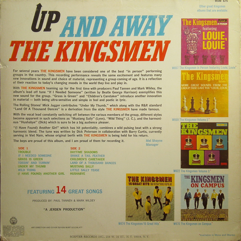 The Kingsmen sind – mit dem einzigen verbliebenen Urmitglied, Gitarrist Mike Mitchell – auch heute noch unterwegs, leben aber gleichwohl von der Legende des Louie Louie-Klassikers.
