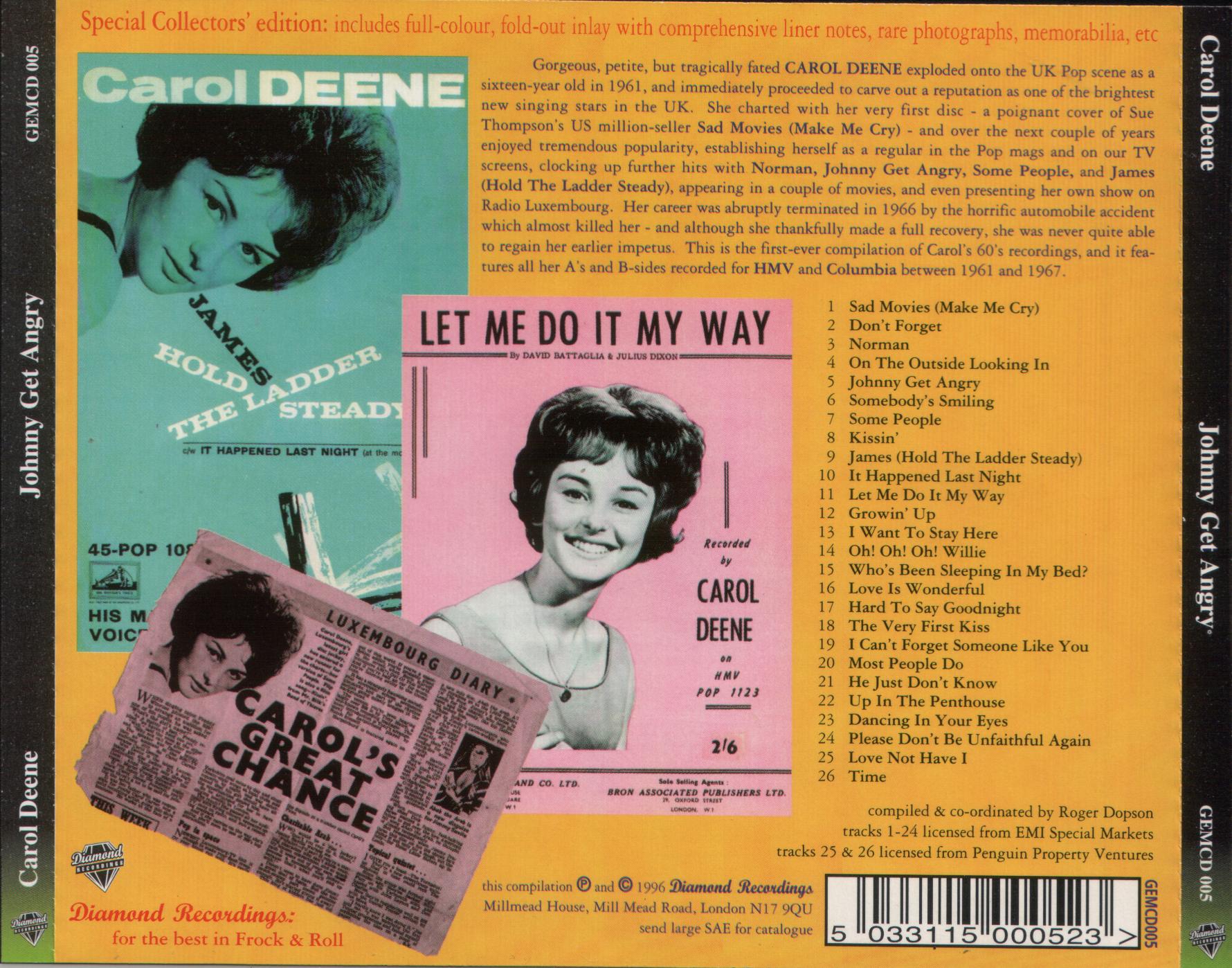 In January 1997 Diamond Records released a compilation album of Deene's work, entitled Johnny Get Angry.