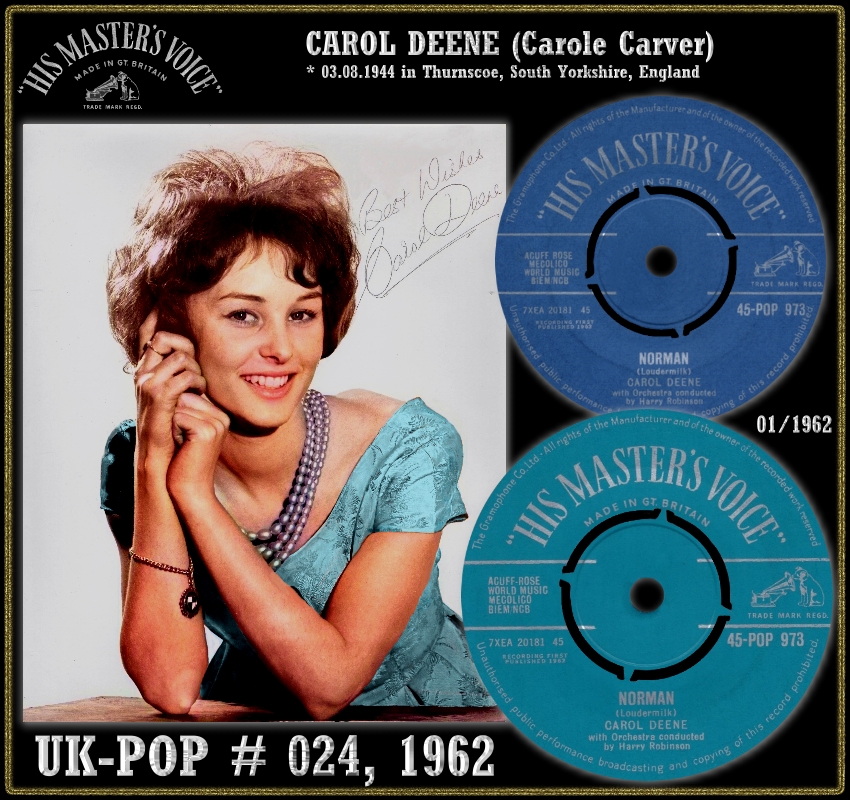 Carol Deene (born Carole Carver, 3 August 1944, Thurnscoe, Yorkshire) was an English pop singer.