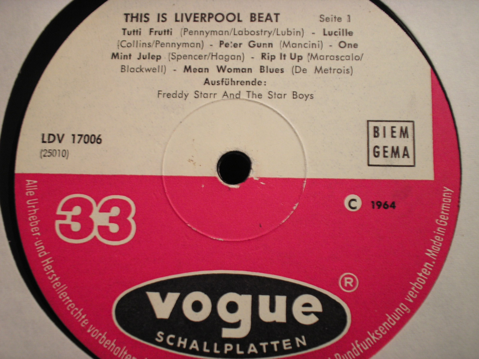 Freddy Starr and the Starboys, This is Liverpool Beat, alte Mono-Vouge LP, LDK-17006, live aus dem Iron-Door-Club in Liverpool.