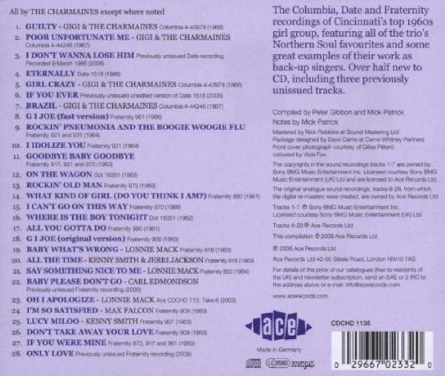 in the U. K. in 2007 on an Ace CD "Gigi & The Charmaines" CDCHD 1135)