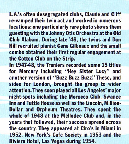 Die 1947 gegründete Formation The Treniers wurde von den Zwillingen Cliff und Claude Trenier geleitet. Begleitet wurden sie vom Orchester des Pianisten Gene Gilbeaux mit dem Saxophonisten Don Hill, dem Bassisten Shifty Henry, dem später James (Jimmy) Johnson folgte, und dem Schlagzeuger Henry „Tucker“ Green. Später gehörten The Treniers auch weitere Brüder, wie Milt und Skip Trenier an.