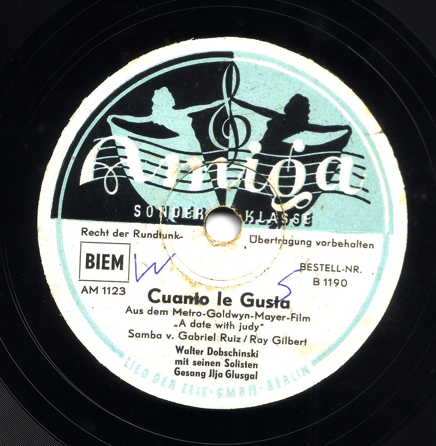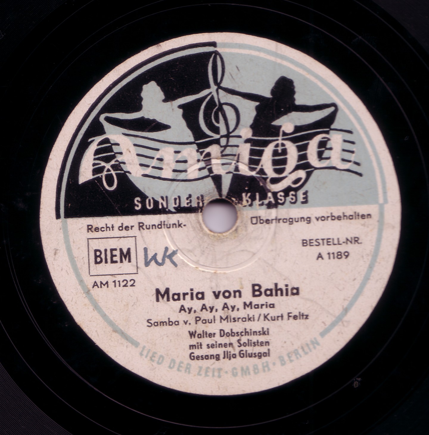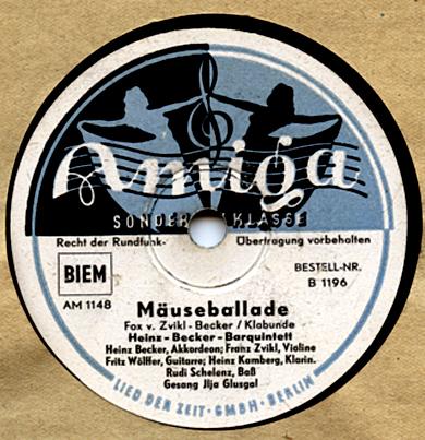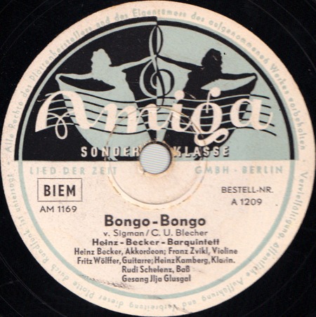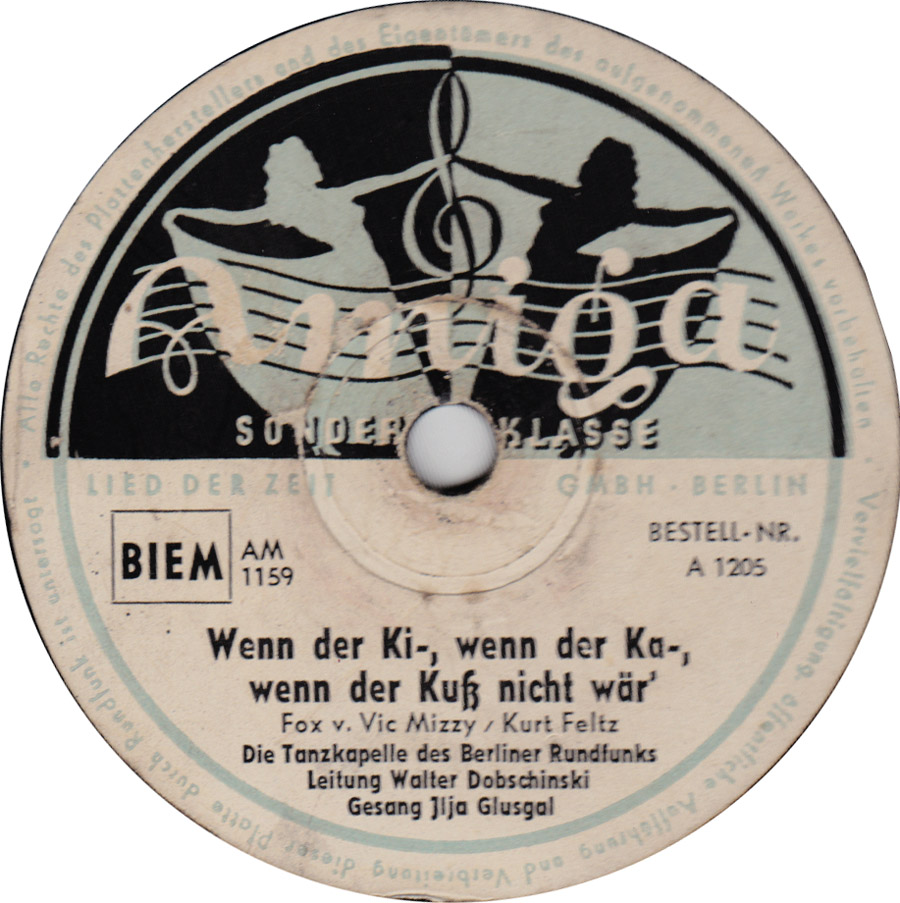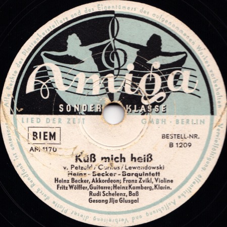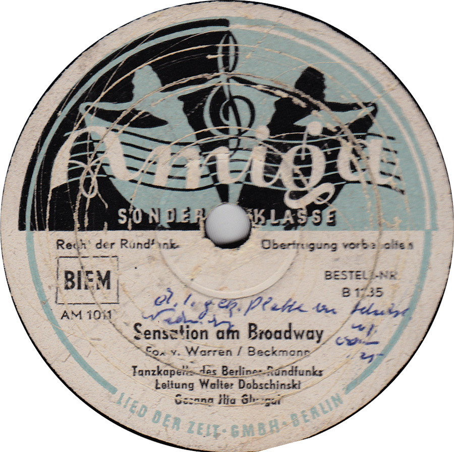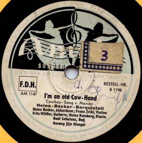 Radio-Star-Band mit den Solisten ILJA GLUSGAL-d, voc, arr, MACKY KASPER-tp, FERRY JUZA-tb, JOACHIM HOLTZ-cl, as, KURT ABRAHAM-ts, GUSTAV LÜCK-b, Aufnahmen für Metrophon,