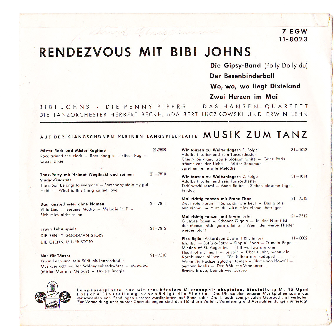 Bibi Johns - Aber nachts in der Bar / Liebling, bleib' bei mir / Polydor 23 598 / 1957