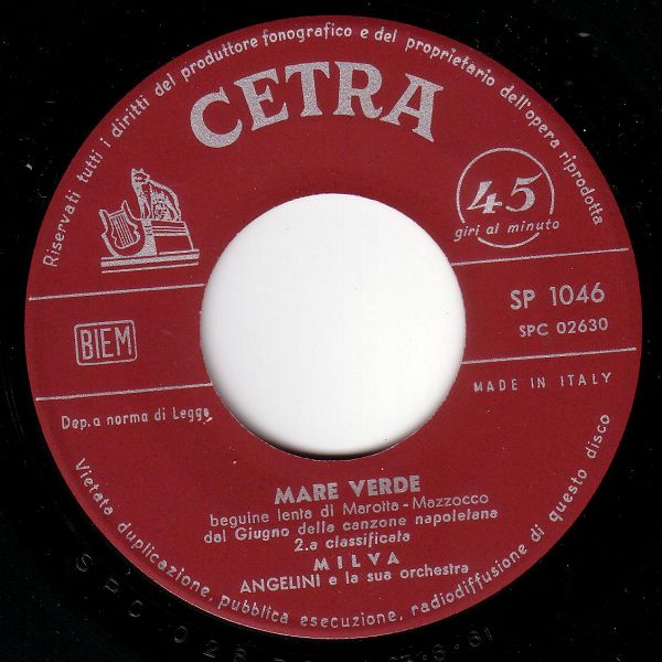 06 61....SP 1046....MILVA ANGELINI e la sua orchestra..Mare verde (SPC 02630)/Credere (SPC 02631)
