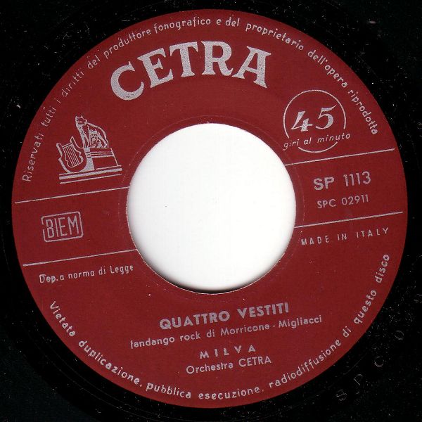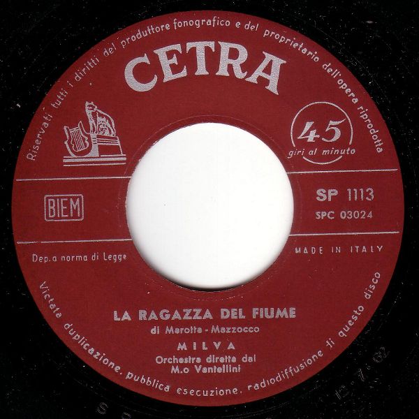 07 62....SP 1113....MILVA Orchestra diretta dal M.o Vantellini La ragazza del Fiume (SPC 03024)/MILVA Orchestra CETRA Quattro vestiti (SPC 02911) (-----/1113[1])