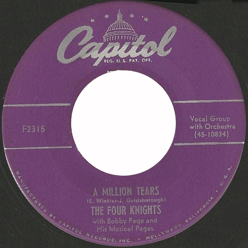 1954 bin ich auch auf den Four Knights-Hit “I Get So Lonely (When I Dream About You)“ # 13 auch bekannt als “Oh, Baby Mine“ gestoßen.