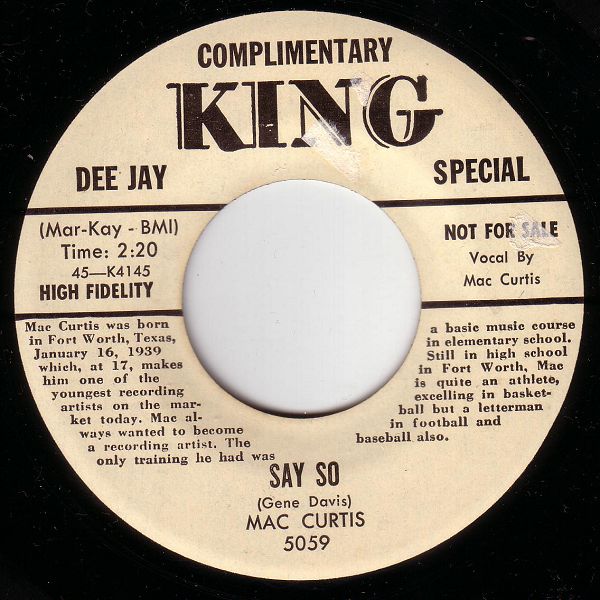 KING SINGLE NR: k 5107 - MAC CURTIS mit WHAT YOU WANT - YOU ARE MY VERY SPECIAL