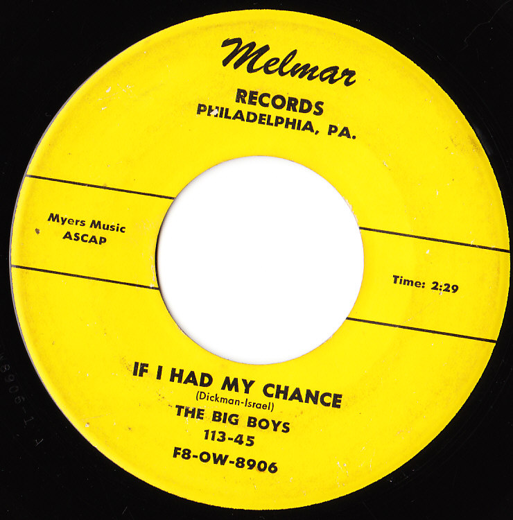?? 55....#9999....THE BIG BOYS..Rock-Rock-Rock-A-Bye Baby (geritzt: GA 100A 45)/If I Had My Chance (geritzt: GA 100B 45) (dann MELMAR 113)