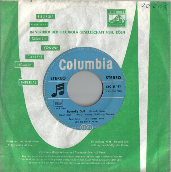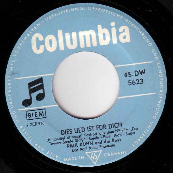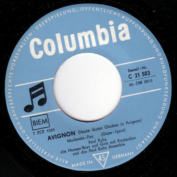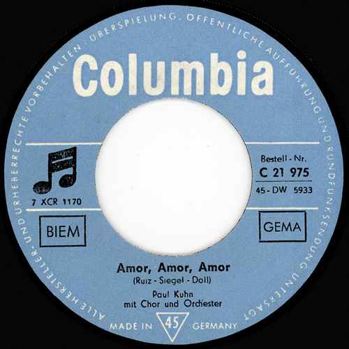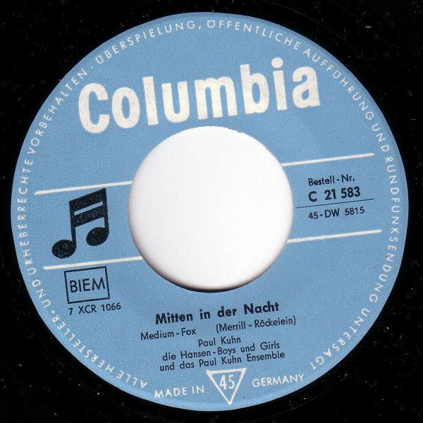 KUHN-ENSEMBLE, PAUL, Columbia (Begleitensemble bei diversen Schallplattenaufnahmen, Solo-Titel u.a. "Banana-Cha-Cha-Cha"/"Jeepers Creepers Cha Cha"-1959)