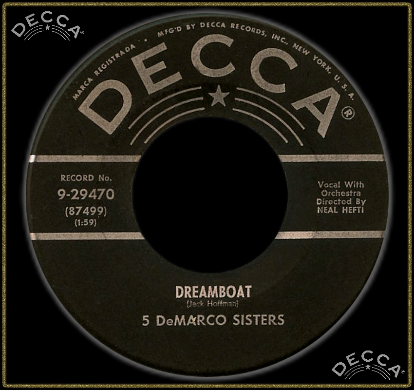 03 55....9-29470....5 DeMARCO SISTERS..Dreamboat (45-87499)/Two Hearts, Two Kisses (Make One Love) (45-87500)