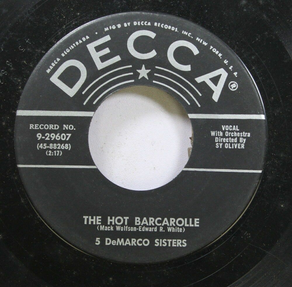 07 55....9-29607....5 DeMARCO SISTERS..The Hot Barcarolle (45-88268)/Sailor Boys Have Talk To Me In English (45-88269)
