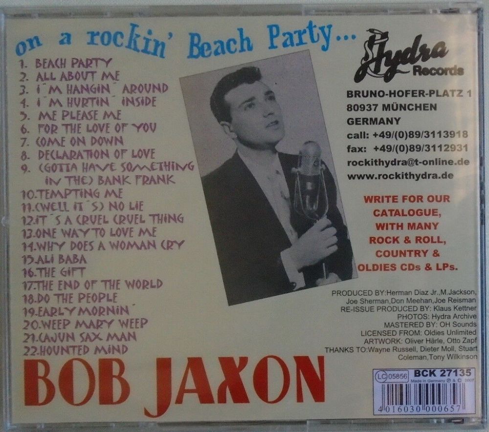 Bob Jaxon wurde am 30. April 1932 als Robert Jackson in New York City geboren. Noch bevor er bei CADENCE seine ersten Aufnahmen veröffentlichte, tingelte er in der Musik-Scene bereits herum, wo er auch seinen Bühnennamen Bob Jaxon annahm. Nur bei TOP RANK recordete er als Bobby Jack, ging aber gleich danach wieder zu seinem alten Bühnennamen zurück.