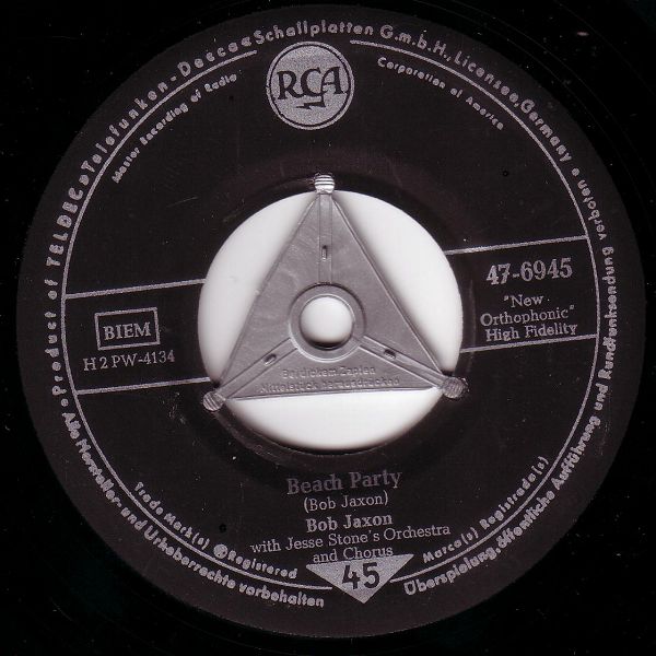 10 57....47-6945....Bob Jaxon with Jesse Stone's Orchestra and Chorus..I'm Hangin' Around/Beach Party (RCA VICTOR 6945)