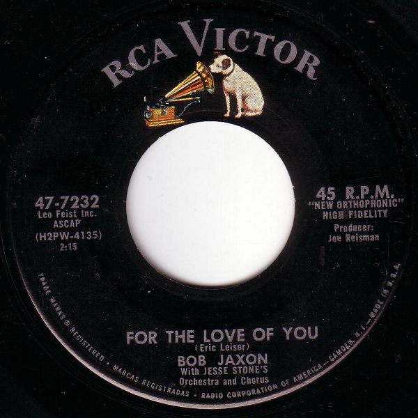 05 58....47-7232....BOB JAXON With MARTY GOLD and his Orchestra..(Well, It's) No Lie (J2PW 0814)/BOB JAXON With JESSE STONE'S Orchestra and Chorus..For The Love Of You (H2PW 4135)