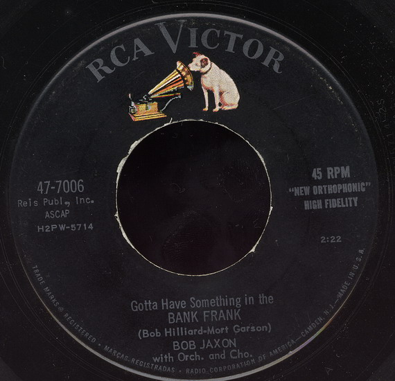 12 57....47-7006....Bob Jaxon with Orchestra and Chorus..Gotta Have Something In The Bank Frank/Come On Down (RCA VICTOR 7006)
