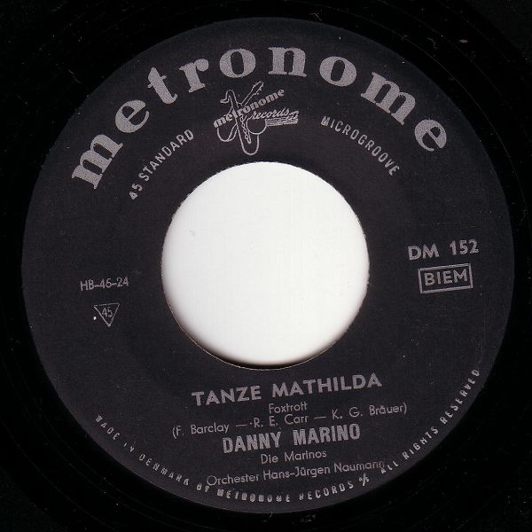 11 59....DM 152....DANNY MARINO Die Marinos Orchester Hans-Jürgen Naumann..Wenn die Wolken zieh'n/Tanze Mathilda (Waltzing Matilda)